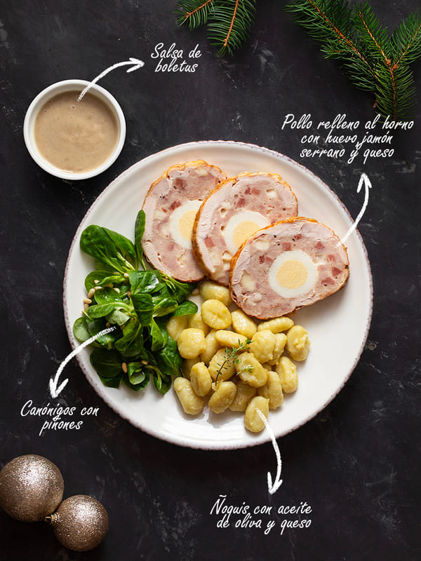 Pollo relleno al horno con huevo, jamón serrano y queso 800g